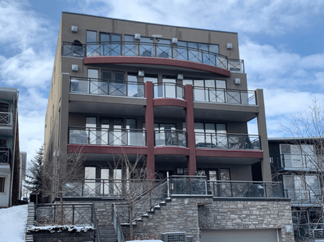 The Beringer is a 10-unit condominium complex located near the core of the city. Built in 2007, the building is four floors, constructed of wood with stucco cladding. It features a partially underground parkade and HVAC systems comparable to those found in larger buildings, including in-floor heating, forced air, and a dedicated power distribution system.
