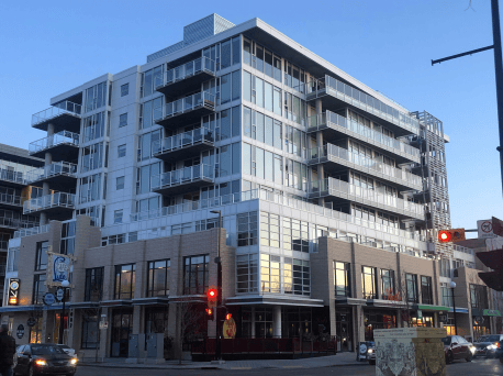The Lido is a 60-unit condominium complex shared between three strata: residential owners, commercial tenants on the main floor, and city parking underground. Built in 2016, it is an icon in the community, taking its place where the old Lido Café used to be. The building is nine floors, constructed of concrete with metal and glass cladding.
